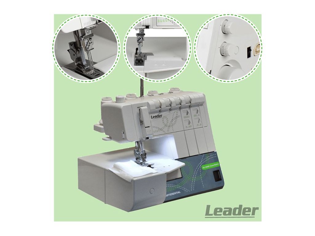3-ihlový 4-nitný coverlock GARUDAN Leader VS400D profesionálne zakončí odevy z úpletov krycím stehom. Ponúka LED osvetlenie, diferenciálny posun, nastavenie prítlaku a vysoký výkon.