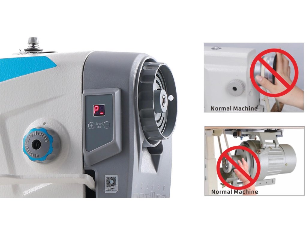 Jednoihlový priemyselný šijací stroj s viazaným stehom a úsporným motorom s veľkokapacitným chapačom. Je vhodný na šitie ľahších aj ťažších materiálov.