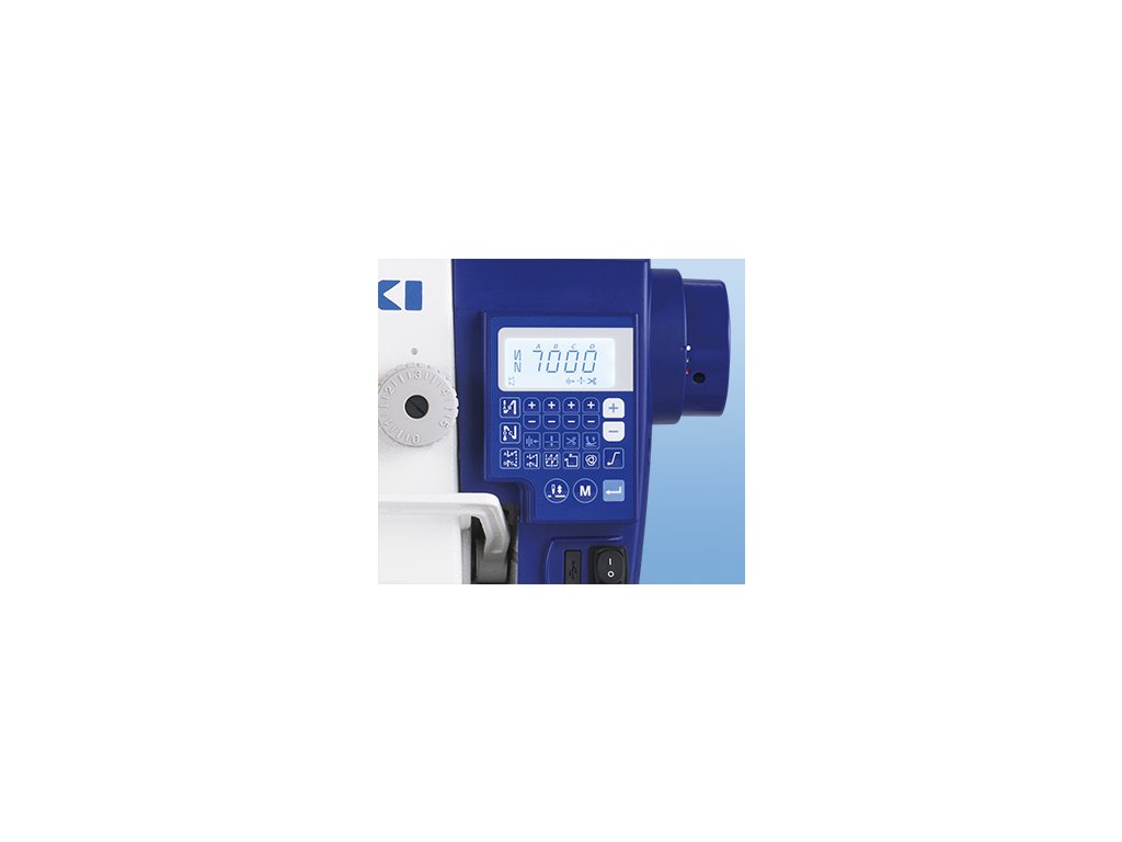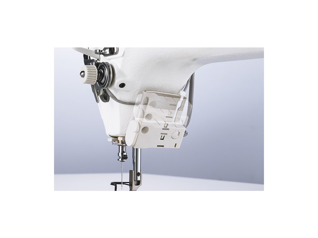 Jednoihlový priemyselný šijací stroj s viazaným stehom, vybavený spodným zúbkovým podávaním, automatickým odstrihom nite, automatickým zapošitím, elektromagnetickým zdvihom pätky, voľbou pozície ihly a plne funkčným ovládacím panelom. Zapínanie a vypínanie stroja je umiestnené priamo na hlave, čo umožňuje jednoduché ovládanie.